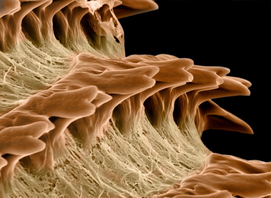 При някои морски охлюви зъбите са още по-впечатляващи. Те могат да съдържат минерали, които ги правят изключително здрави – достатъчно, за да стържат твърди повърхности. Именно тези структури са обект на интерес за учените, които изучават естествените „инструменти“ в природата.