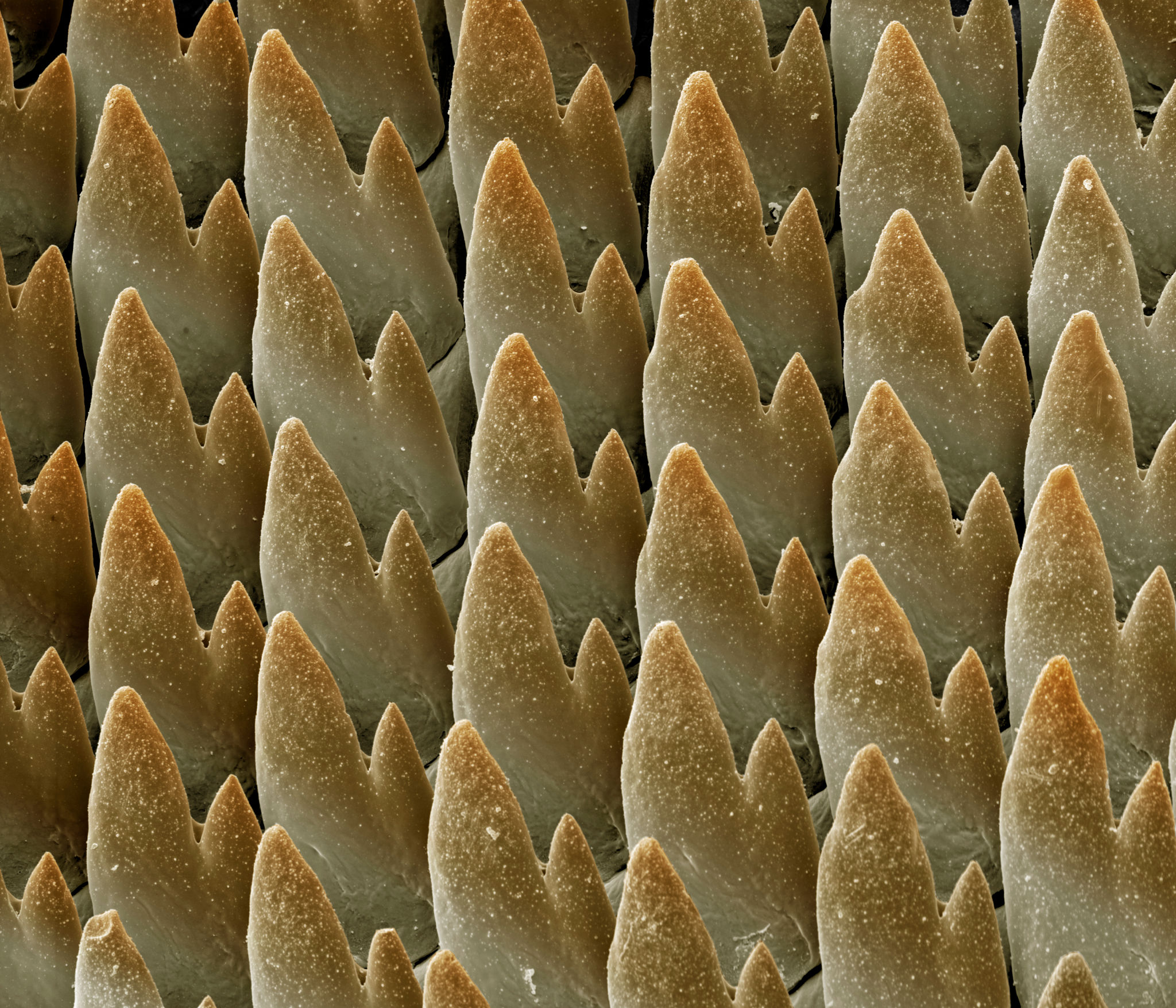 Най-изненадващото е, че зъбите на охлювите не са постоянни. Те се износват бързо и непрекъснато се заменят с нови. Това позволява на животното да поддържа радулата си функционална през целия си живот, независимо от това колко твърда е храната.