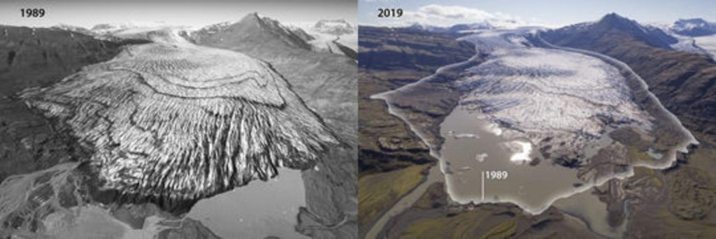 Исландските ледници се топят с ускорени темпове, като някои вече са официално обявени за „изчезнали“. Намаляването на ледниците оказва влияние върху водните ресурси, екосистемите и дори геологията на острова.